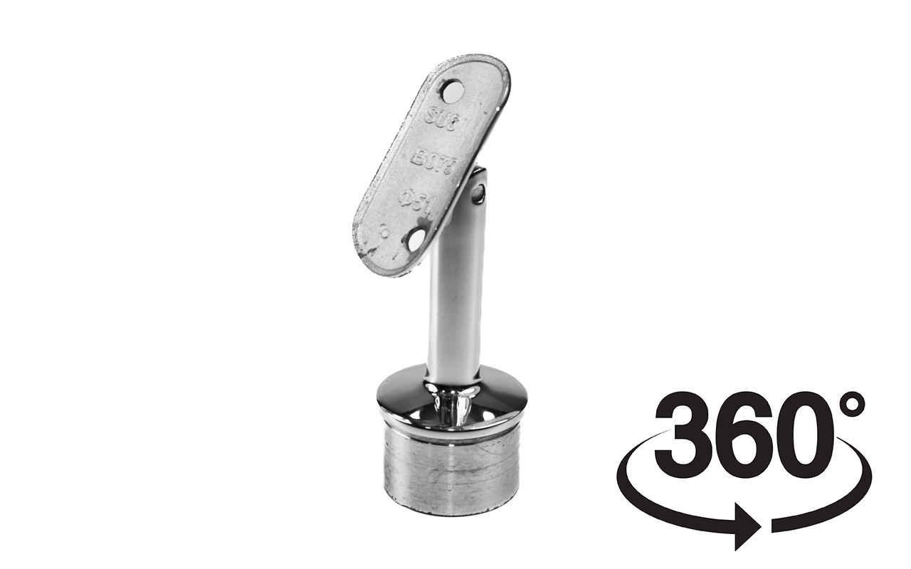 Наконечник палец с регулируемым ложементом под поручень диаметром Ø50.8 мм, на стойку диаметром Ø38.1х1.5 мм. Деталь литая, полированная, с повышенной коррозионной стойкости. Марка стали - AISI 316