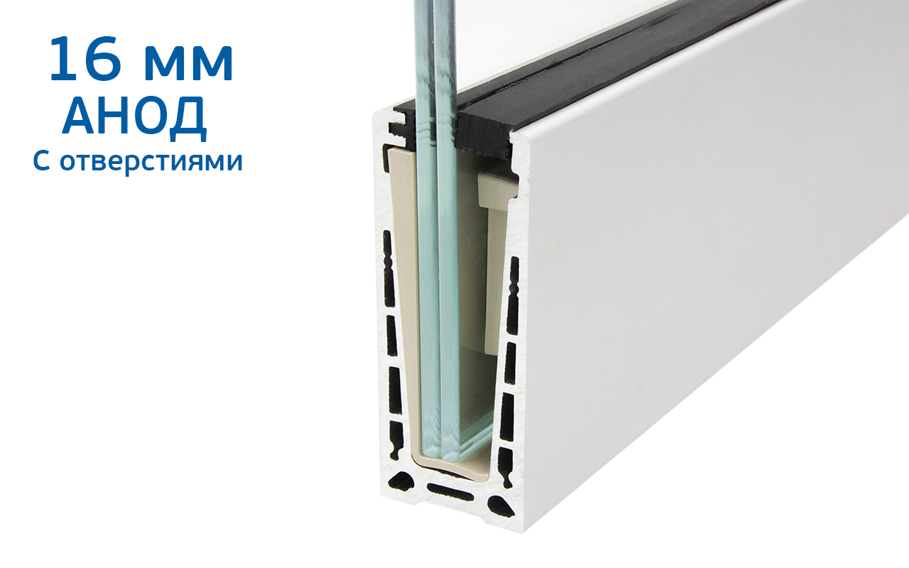 В комплект анодированного профиля под стекло 16мм и 8+8мм входит: