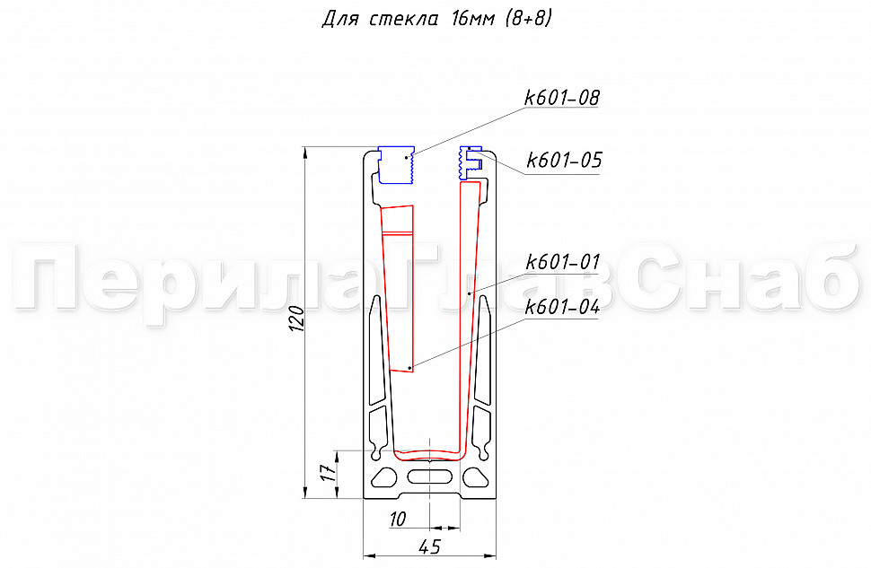 k601 — профиль для ограждений на несущем стекле ( для стеклянных ограждений). Алюминиевый профиль чаще всего используется при строительстве таких объектов, как торговые дома, бизнес-центры, отели, спортивные сооружения. Максимально допустимая высота ограждения может доходить до 1200 мм, боковая нагрузка – до 430 кг.