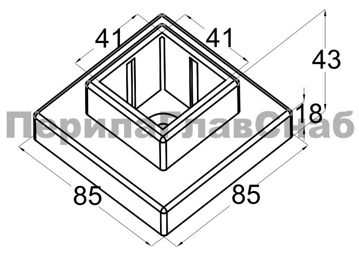 Фланец для трубы 40х40, литой, закладная под стойку, AISI 304 k350