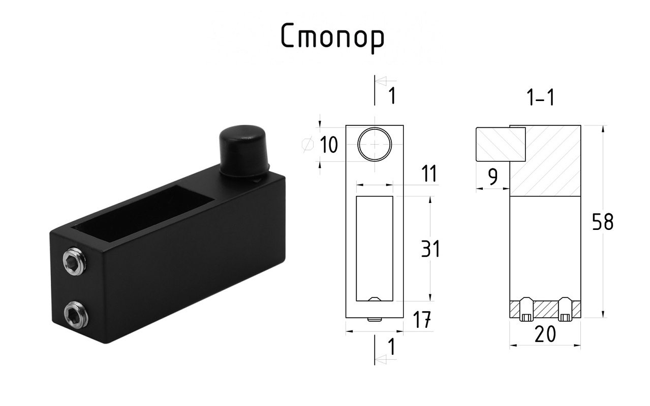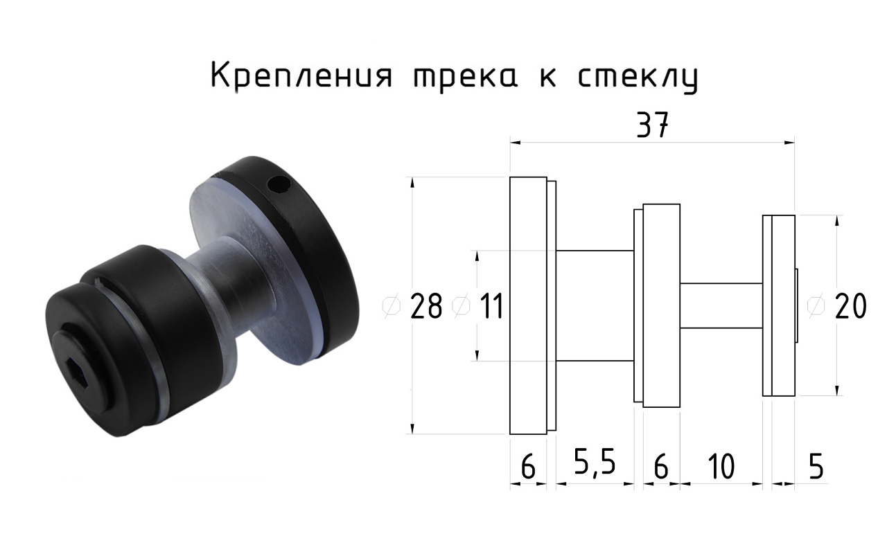 Крепление трека 30х10 к стеклу, AISI 304 черный t449 BL купить в Уфе