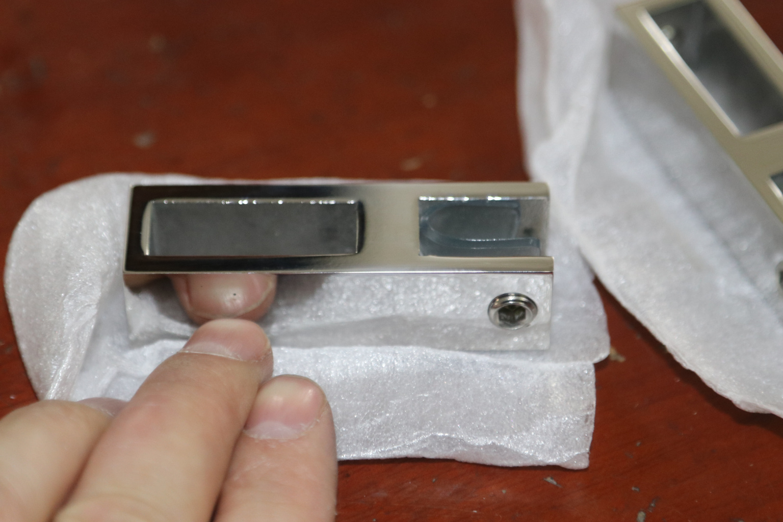 Соединитель труба-стекло, предназначен для трека 30х10 мм. Деталь полированная, марка стали - AISI 304.