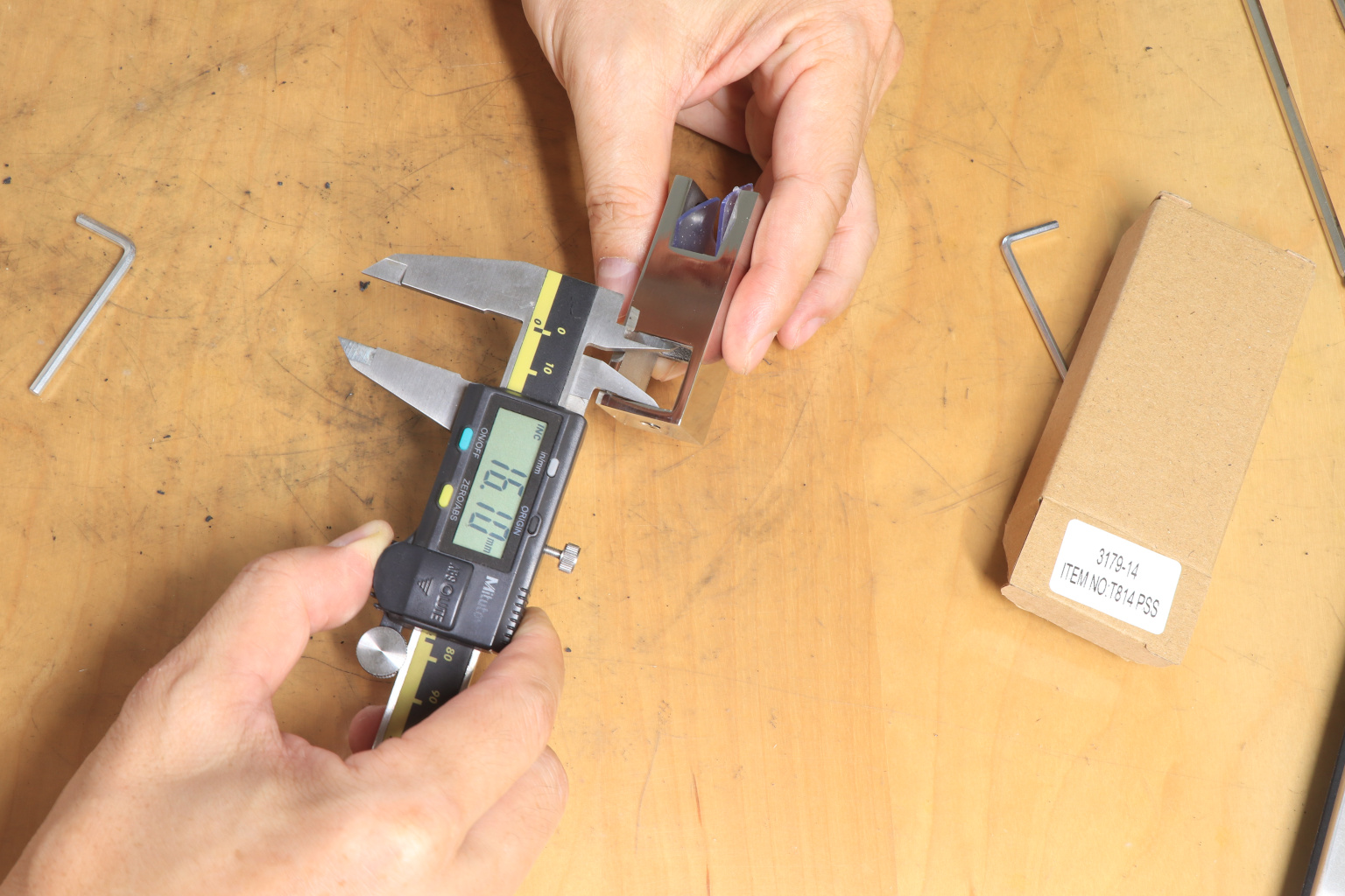 Крепежный элемент сквозной для трубы 15х15мм. Деталь полированная, марка стали - AISI 304.
