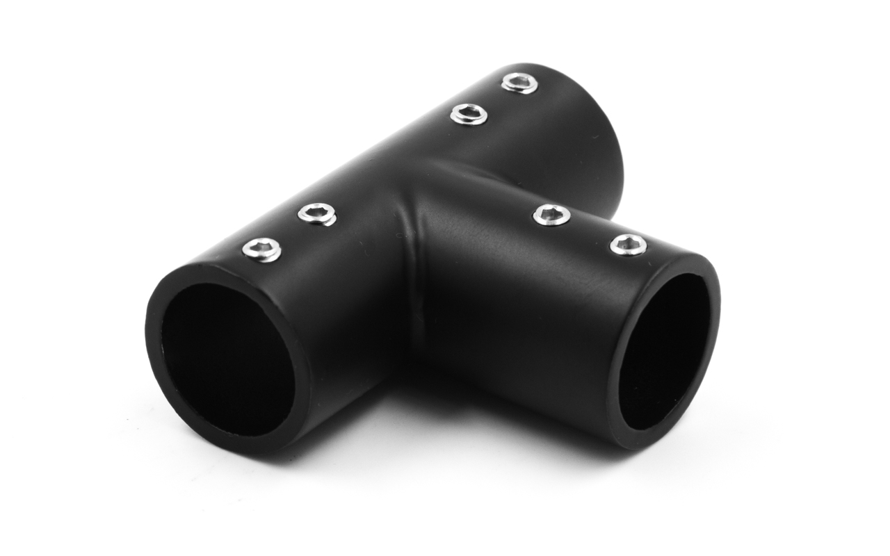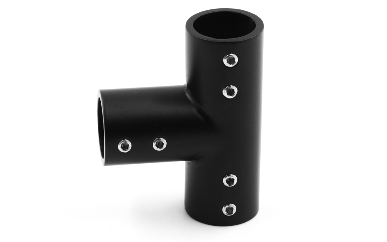 Труба вставляется в тройник со всех сторон и фиксируется с помощью шестигранника