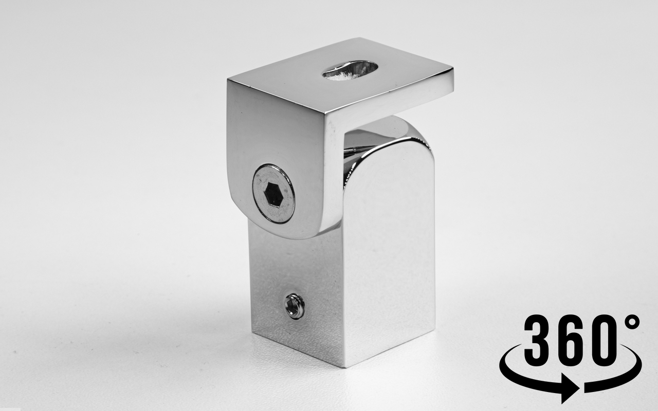 Коннектор предназначен для крепления труб Ø19 мм к стене под произвольным углом при монтаже верхней обвязки душевых кабин.