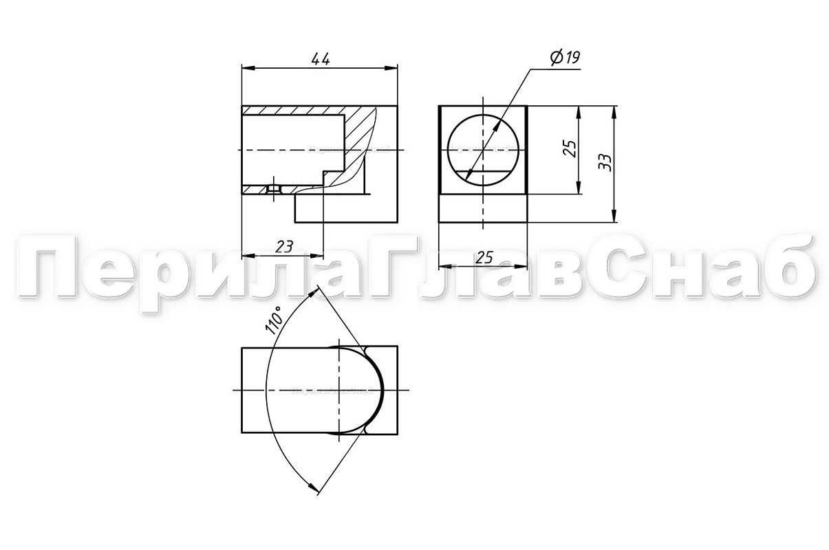 Коннектор предназначен для крепления труб Ø19 мм к стене под произвольным углом при монтаже верхней обвязки душевых кабин.