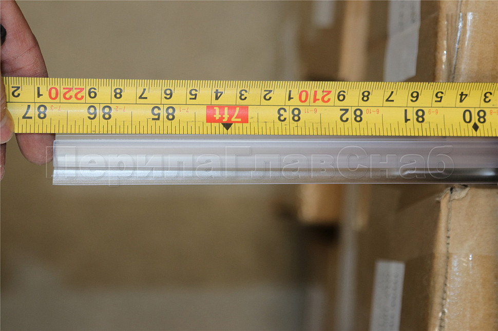 Уплотнитель имеет исполнение прозрачной поверхности, выполнен из материала ПВХ. Имеет П-образный профиль. Толщина одного типоразмера составляет 1.5 мм, длина – 2200 мм. За счет своих свойств (стойкость к щелочам, минеральным маслам и многим кислотам) прекрасно подходит для крепления стеклянного листа по всему периметру. Позволяет герметично соединять стеклянные панели со стеной, что гарантируют отсутствие течи в вертикальной части конструкции. Этот уплотнитель применим в сочетании со стеклом толщиной до 8 мм и углом в плане до 1350. Лучше всего подходит для установки в пол.