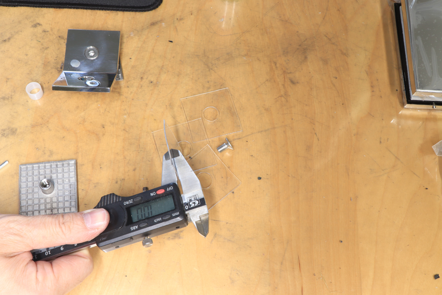 Фиксируется с помощью шестигранника, винтов. Отверстие в стекле нужно подготовить заранее (идут в комплекте, под стекло 8-10 мм)