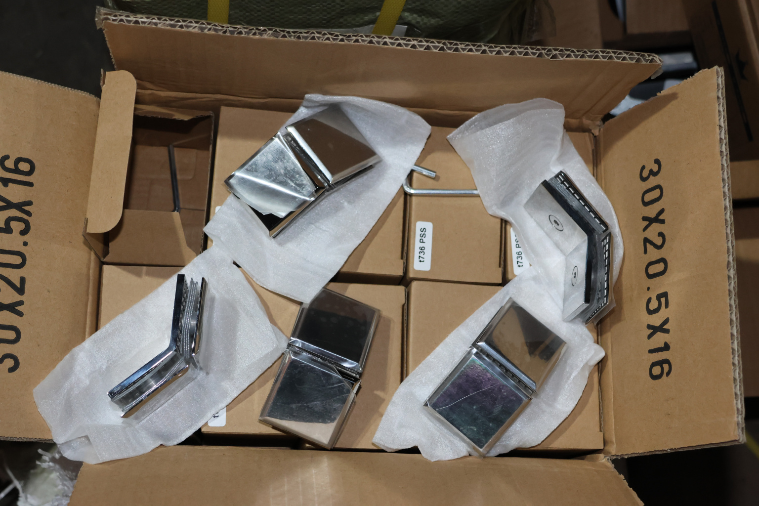 t726-2 SSS - коннектор для душевой кабины стекло-стекло 135° 45х45 мм. Деталь шлифованная, марка стали - AISI 304, имеет сглаженные углы. менее практичен для дизайнерских решений.