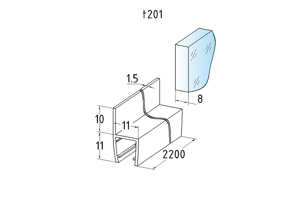 Уплотнитель для стекла в душевую кабину 8 мм, стекло-стекло 2200 мм жесткий ус t201