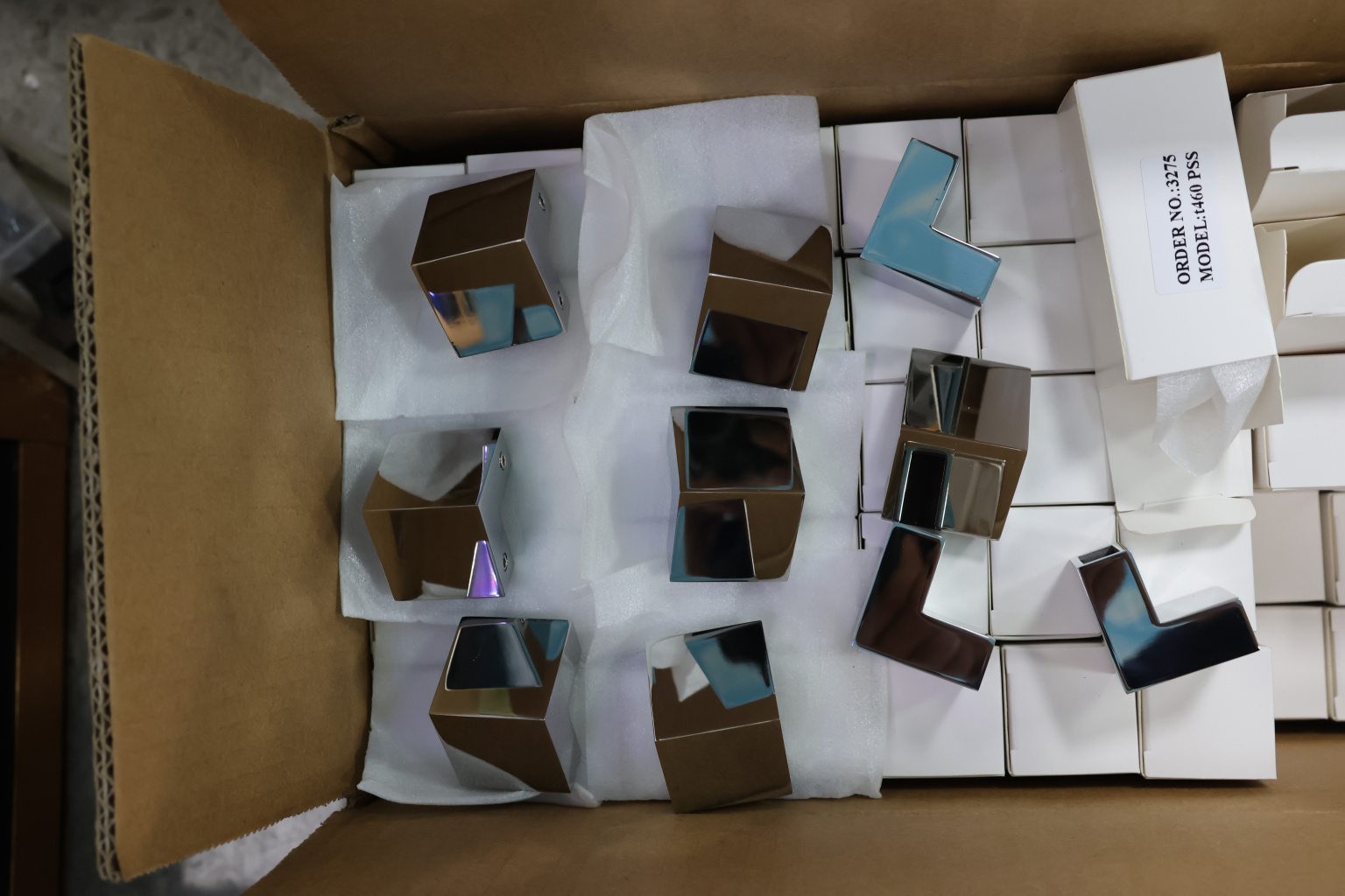 Соединитель труба-труба 90°, для трека 30х10 мм,марка стали - AISI 304, поверхность -полированный