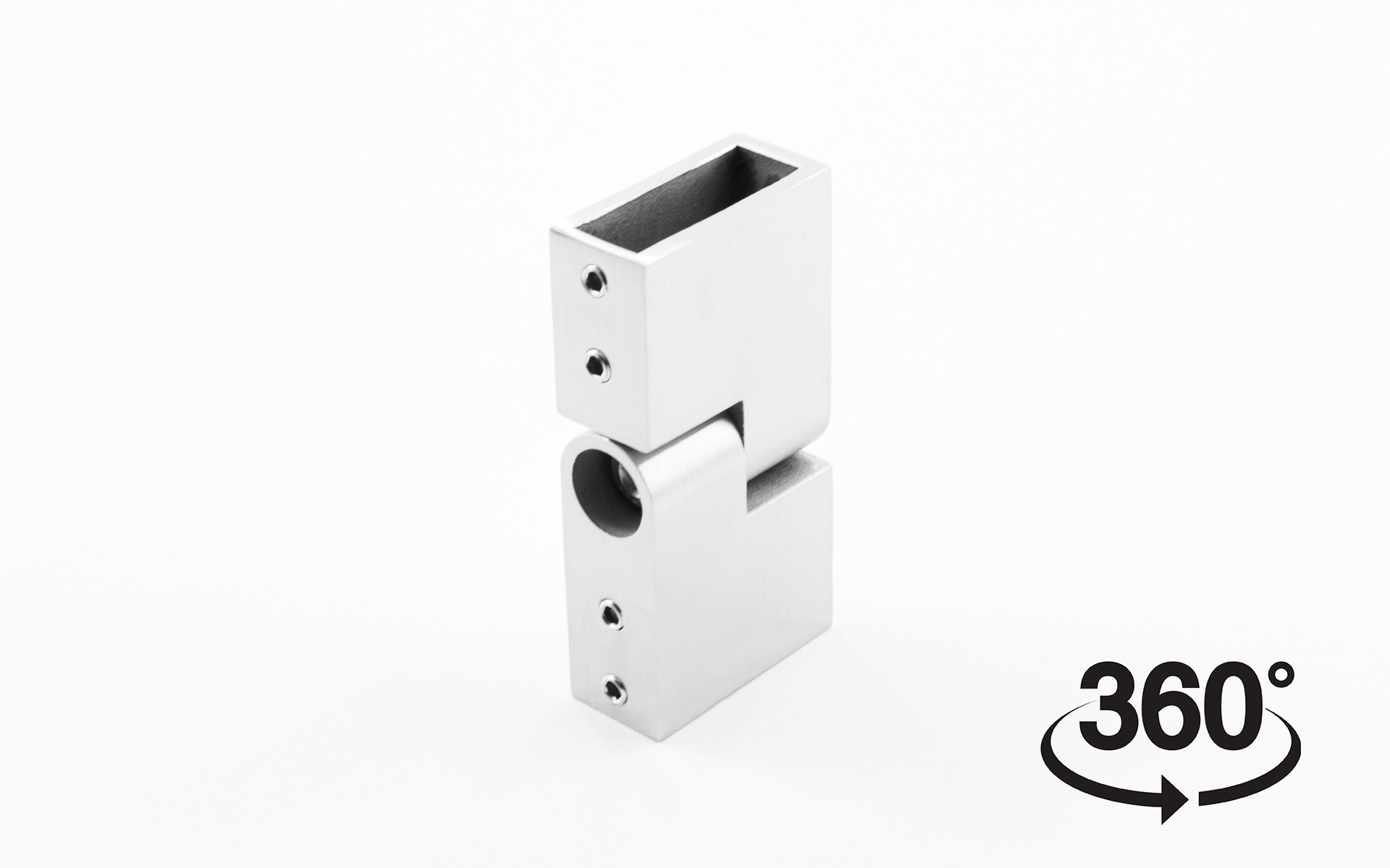 Коннектор предназначен для соединения между собой профильных труб 30х10 в вертикальной ориентации, под произвольным углом при монтаже штанг верхней обвязки душевых кабин.