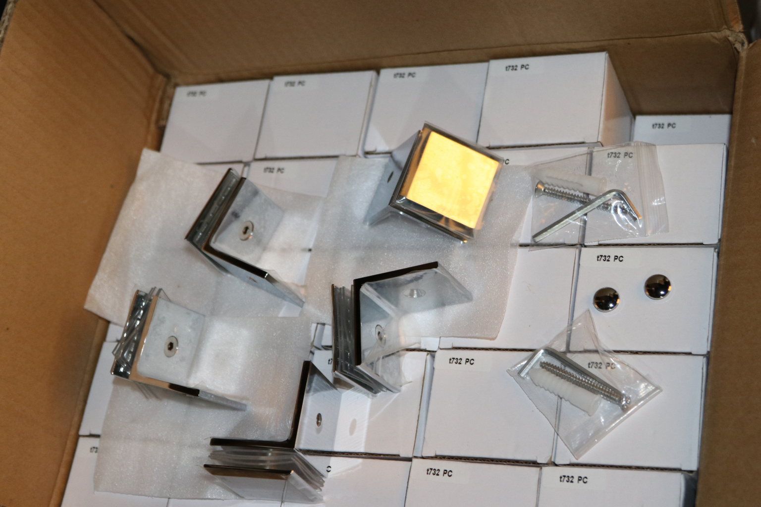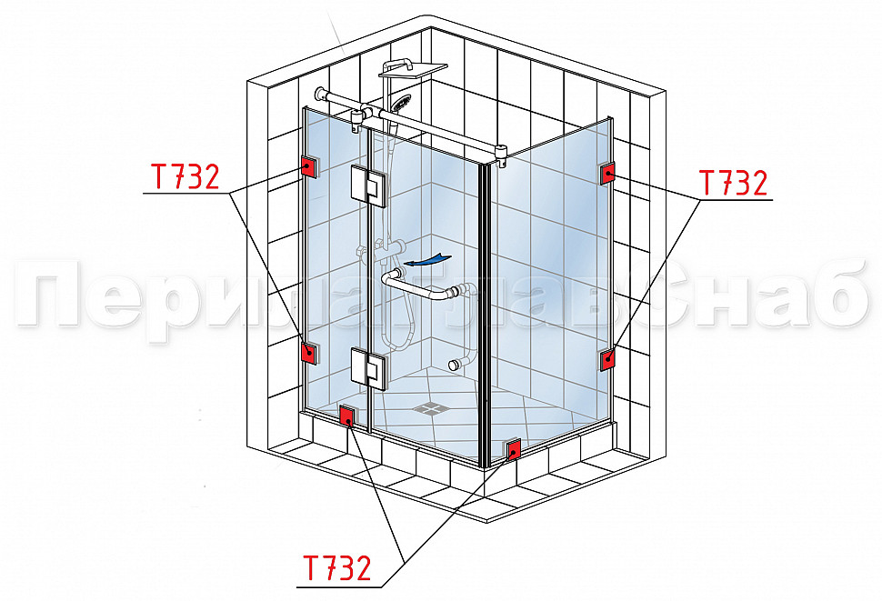 Коннектор для душевой кабины стена-стекло 90° 45х45 мм латунь-хром, полированный t732 PC