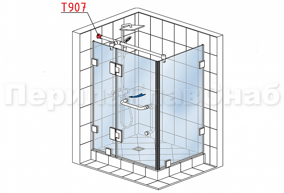Подходит для монтажа верхней системы штанг в стеклянной душевой кабине