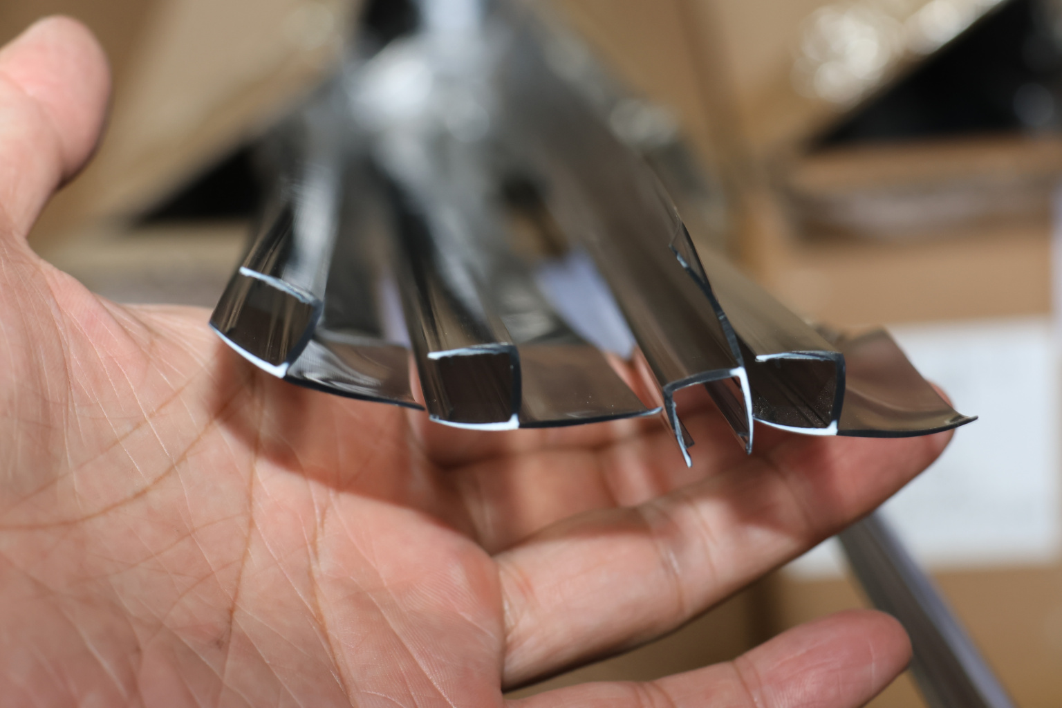 Описание Уплотнитель для стекла 8мм, полупрозрачный черный, 180°, стекло-стекло 2,2 м.