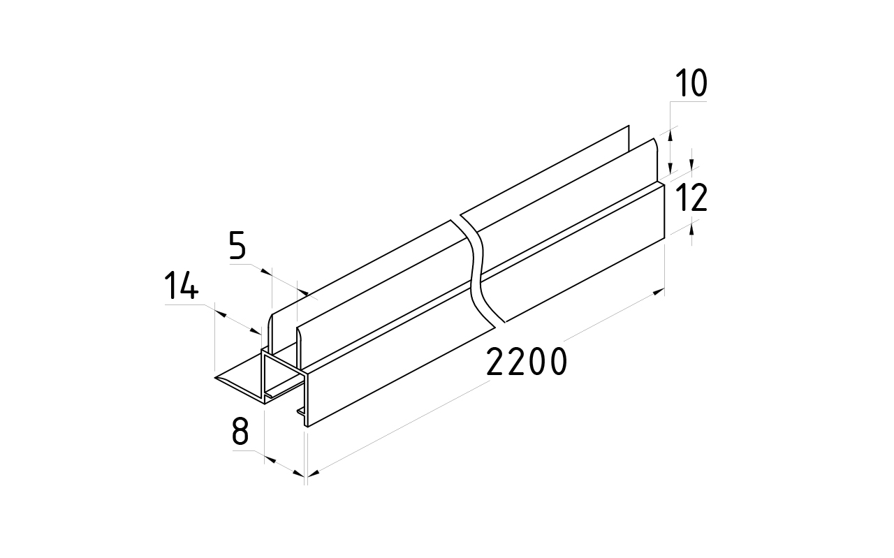 Уплотнитель для стекла в душевую кабину 8 мм, стекло-стекло 2200 мм t203