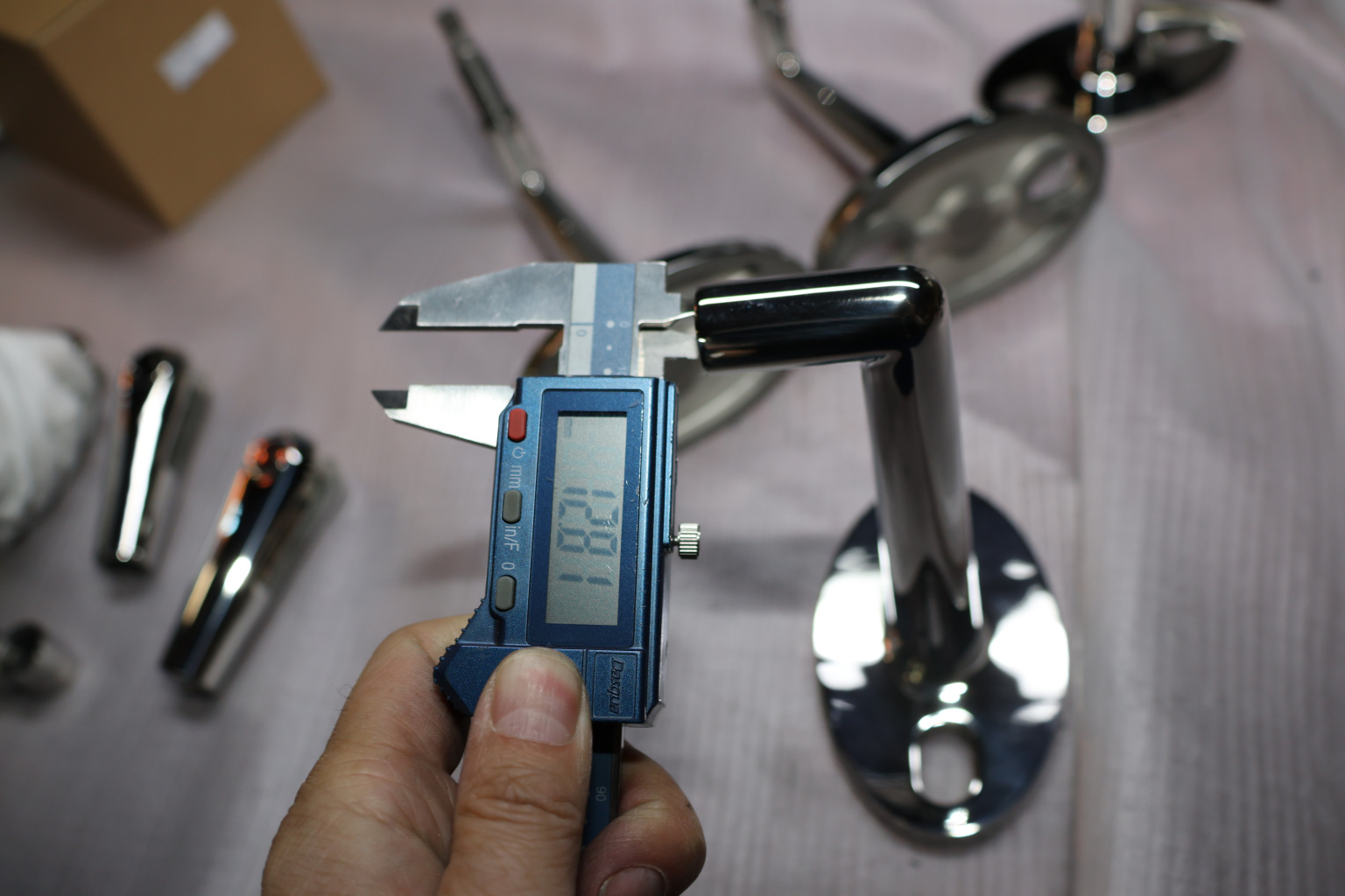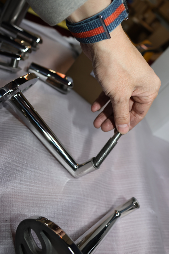 Держатель крепится к стене посредством шпильки. Затем в дистансер держателя вкручивается рутель (предпочтительно k269-6) и уже на рутель крепится стекло.