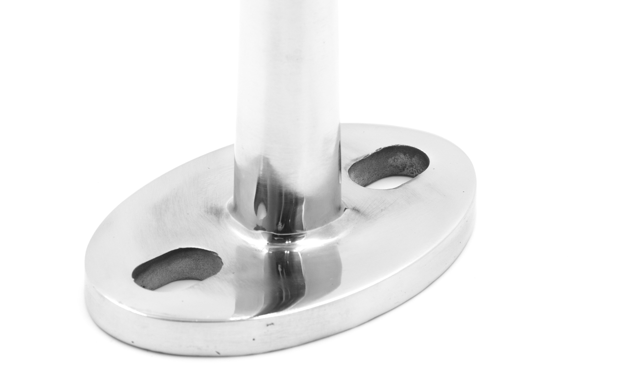 • Высокое качество при низкой цене. 304-я марка стали обеспечивает высокую устойчивость к агрессивной внешней среде. При этом позволяет выпускать крепление по вполне приемлемой цене. Отличный внешний  вид детали обеспечивается её высококачественной полировкой.