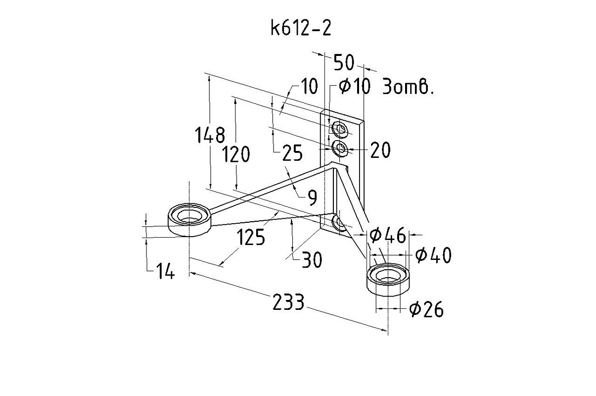k612- Держатель стеклянного козырька двойная (Соединение стойка – рутель х 2). k612-2 имеет три отверстия и выдерживает большую нагрузку