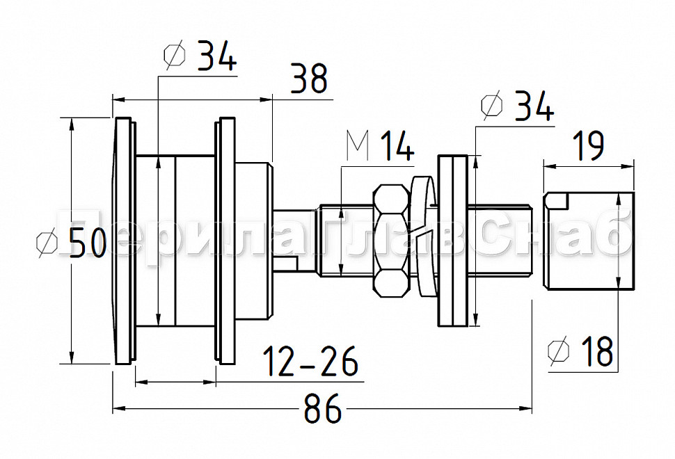 Рутель под стекло 10-26 мм, шпилька М14, регулируемый, разборный (AISI 304) k269-6