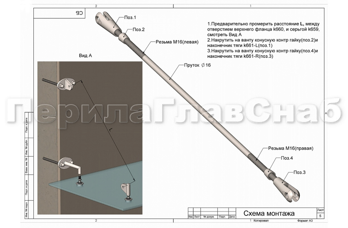 Вант(тяга) для козырька М16, длина 1750мм (AISI 304) k668-16-1750
