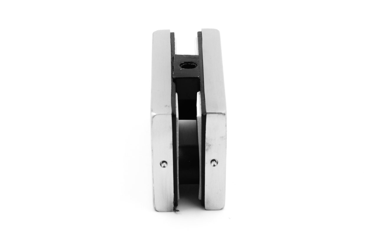 Служит для крепления неподвижного полотна стекла или двух полотен к стене. имеет повышенную несущую способность. Может использоваться как крепление глухого полотна и фрамуги к стене одновременно