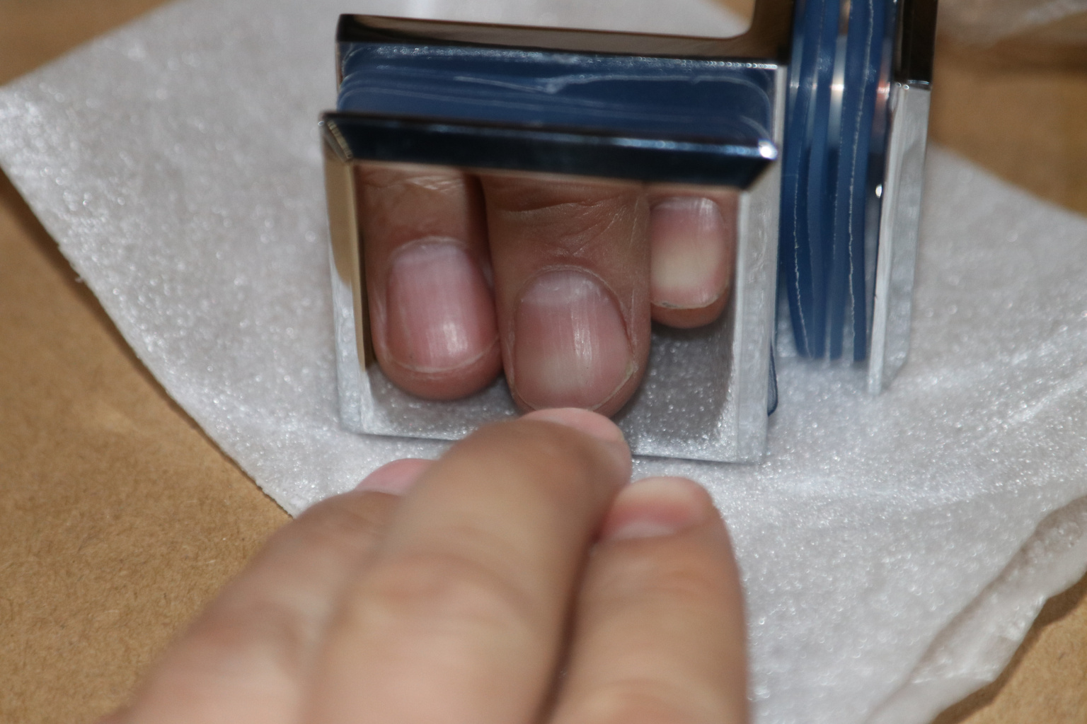 Коннектор для душевой кабины, стекло-стекло 90°, 45х45 мм. Материал - латунь-хром, поверхность - полированная