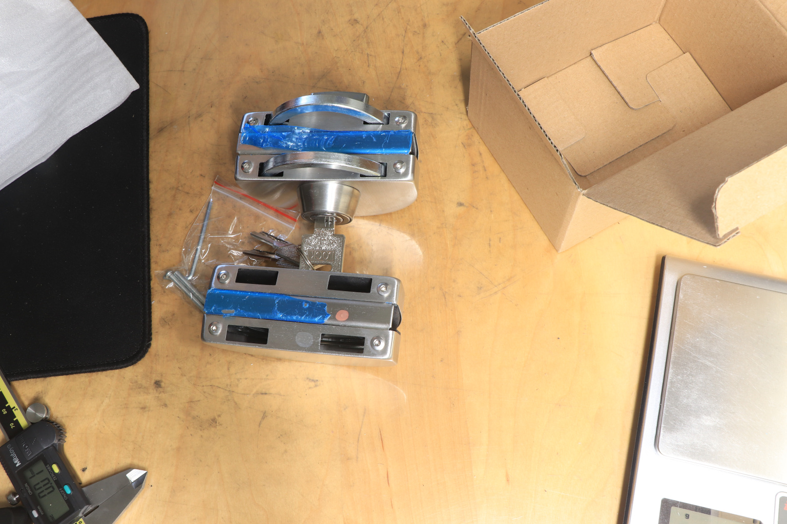 замок для раздвижных дверей, с ответной частью на стекло устанавливается без вырезов в стекле, таким образом, его можно поставить уже после монтажа раздвижных дверей.