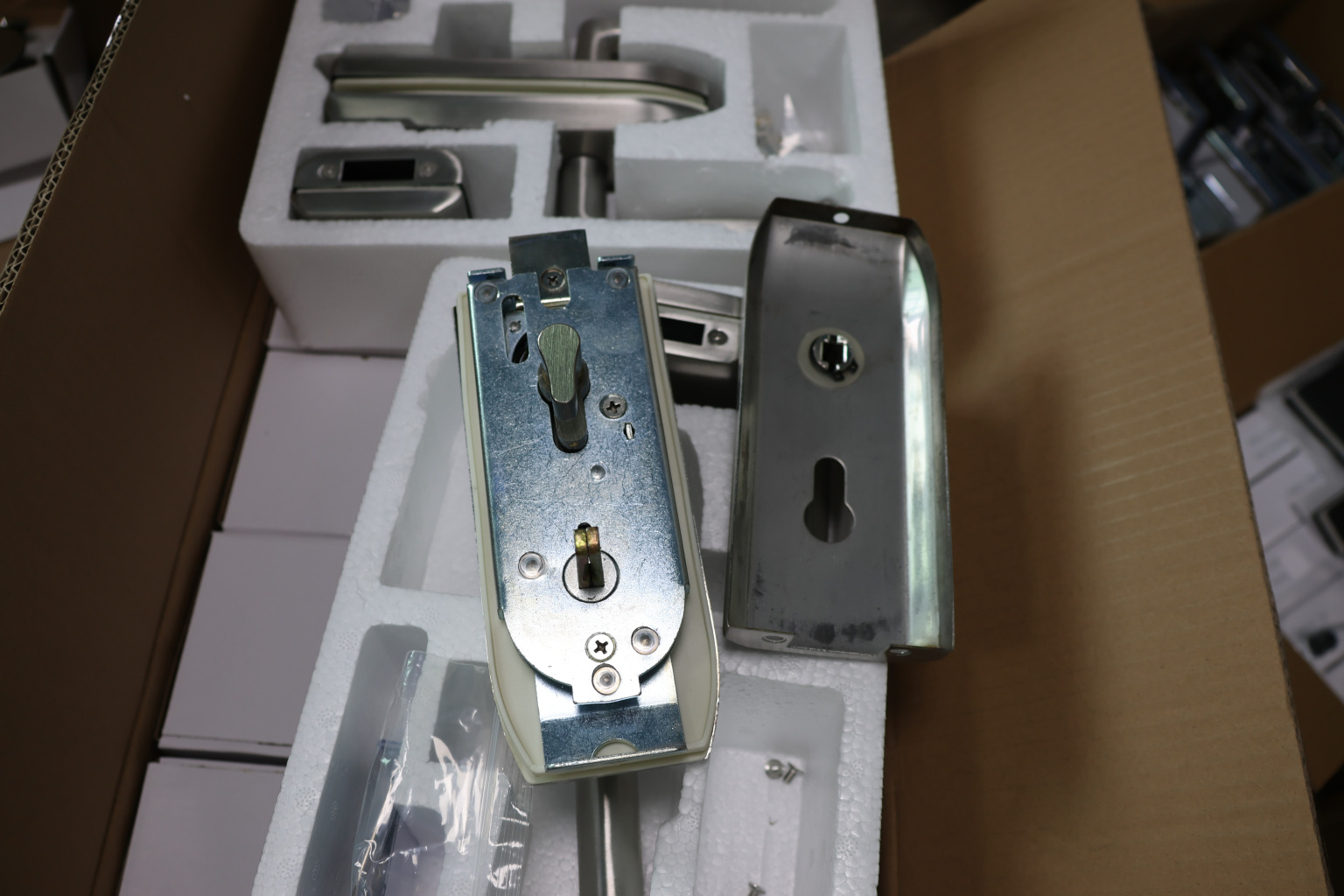 С помощью шестигранников откручиваем ручки замка, вертушку на личинке и с торца замка два винта откручиваем и снимаем крышки. И фиксируем замок в подготовленный вырез в стекле. Далее закручиваем и фиксируем обратно замок и после- крышки и ручки ставим на место.