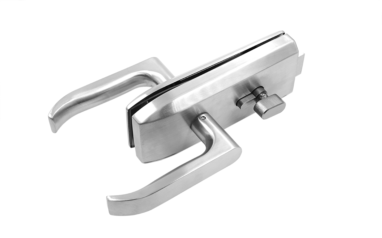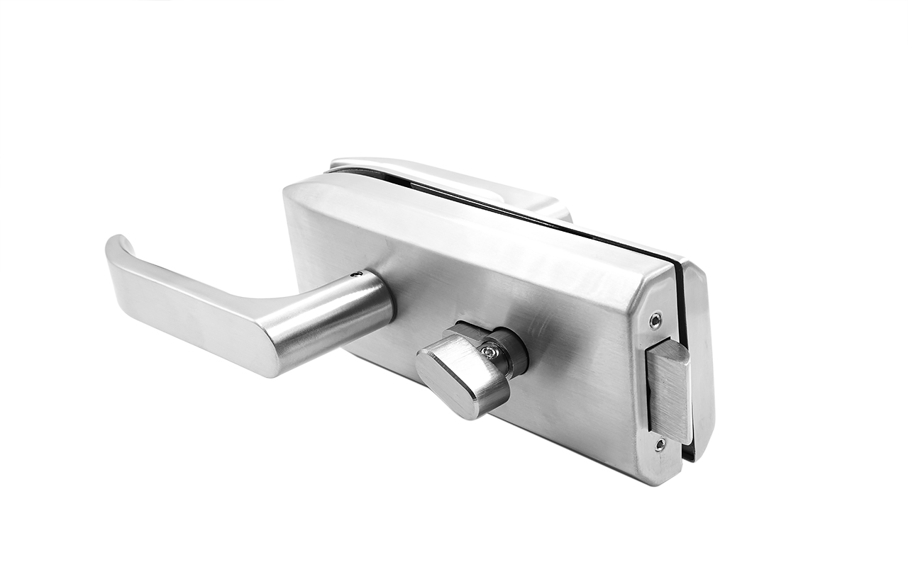 Замок для стеклянной двери с нажимной ручкой без притвора, евроцилиндр односторонний ключ/защелка, в комплекте ответная часть на стекло t155 SSS