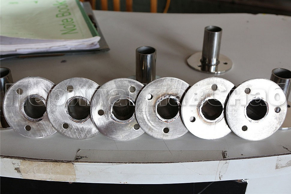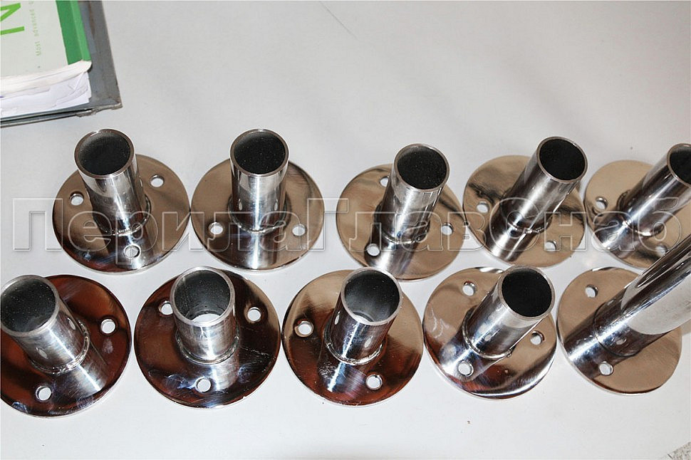 Треханкерная закладная под трубу диаметром 38.1 мм. Деталь полированная, сварная, с тремя отверстиями. Марка стали - AISI 201