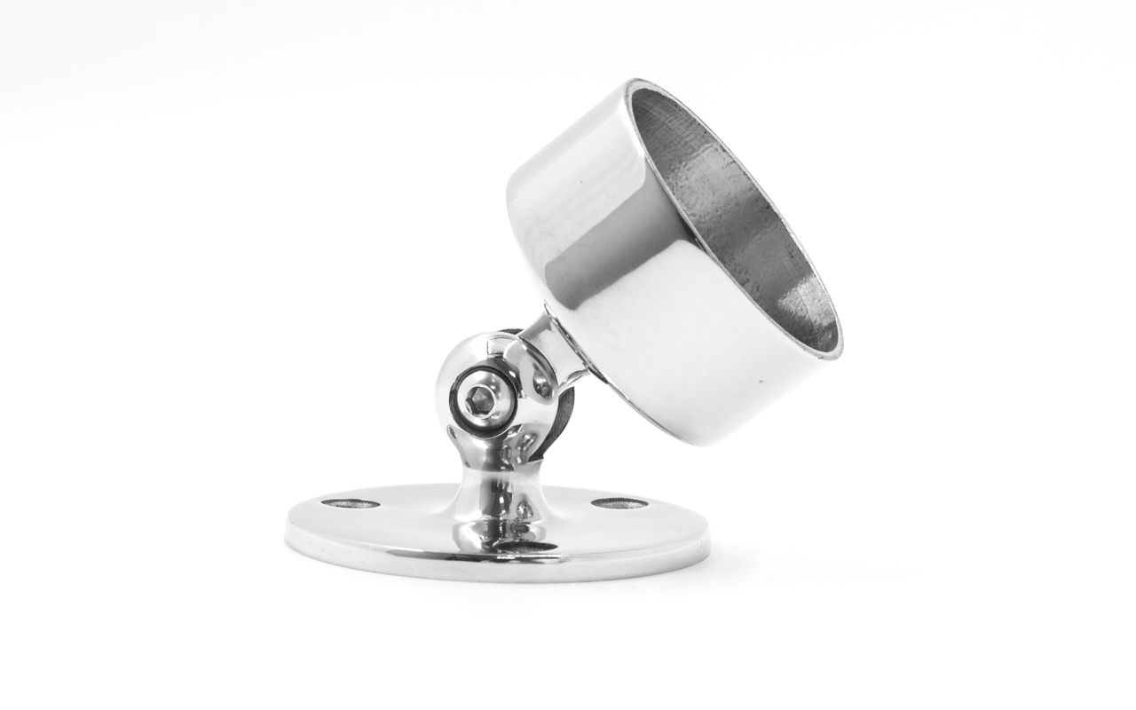 Когда перила приходят в стену под углом этот фланец с шарниром дает дополнительную прочную фиксацию поручня.