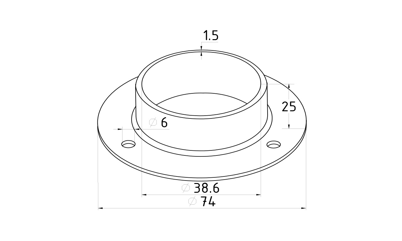 Фланец штампованный, для трубы Ø38.1 мм, полированный, внешний диаметр Ø76 мм, толщина 2 мм (AISI 304) k533