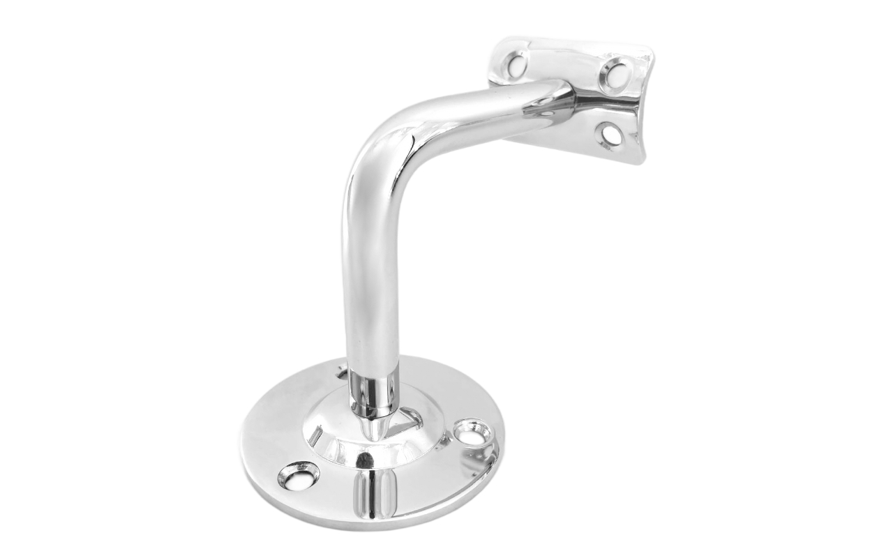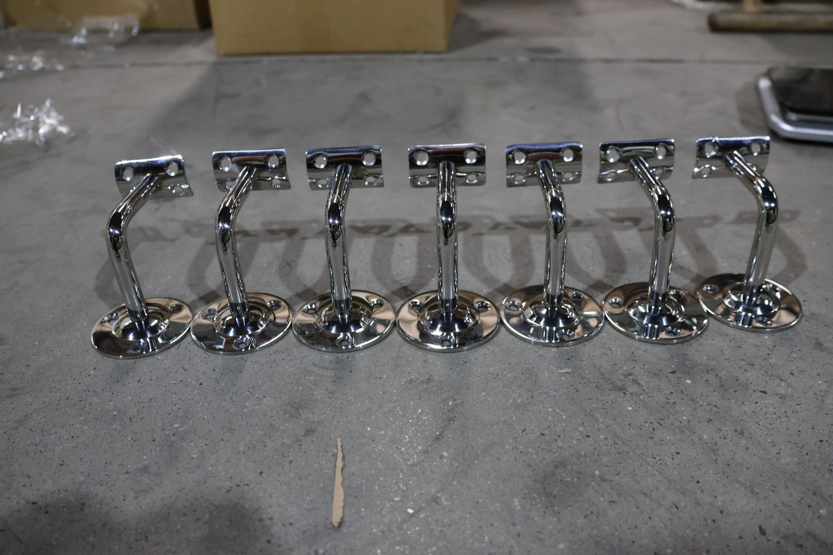 К стене стальной держатель крепится фланцем на три самореза Ø3 мм. Поручень крепется на саморезы или на сварку.