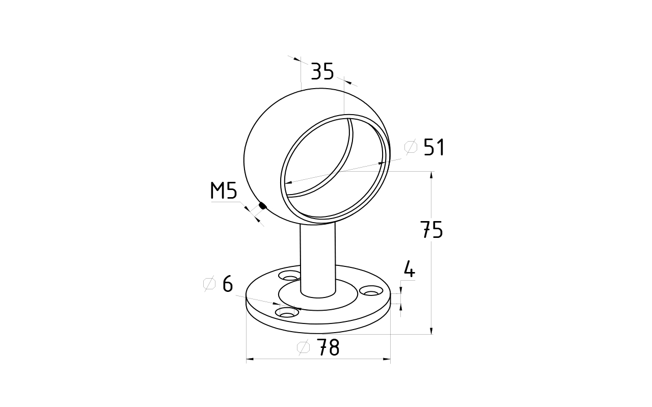 Применяется для бокового крепления нержавеющего поручня к стене.