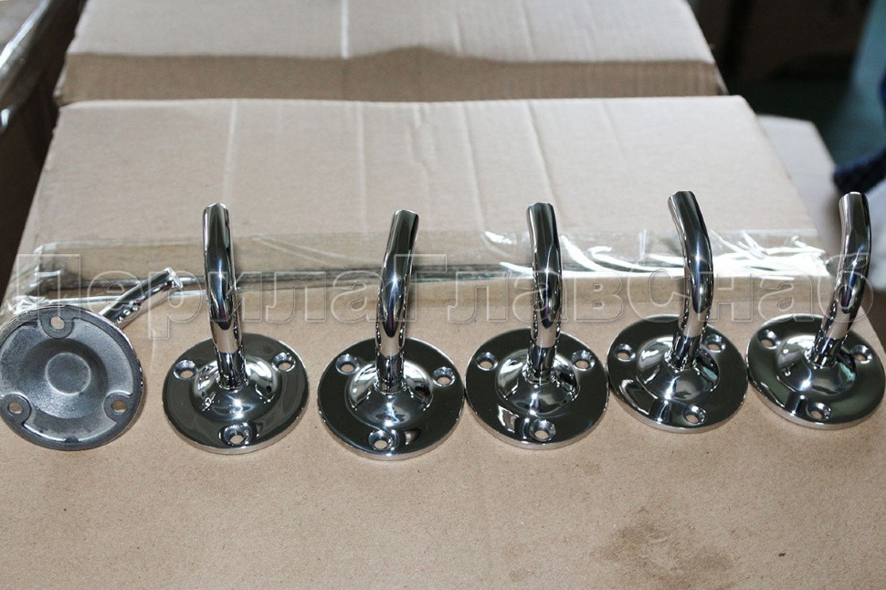 Применяется для внутреннего крепления квадратной трубы поручня лестничных перил сечением 40х40 мм в стену.