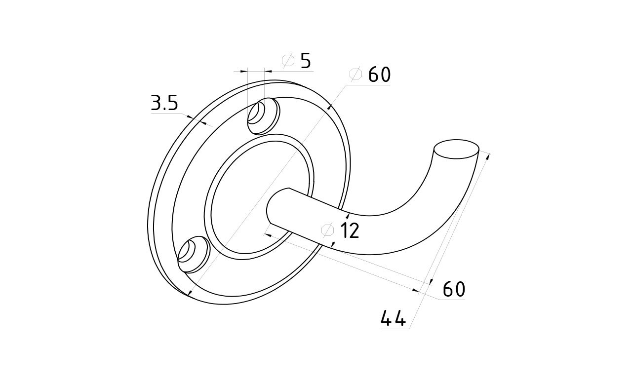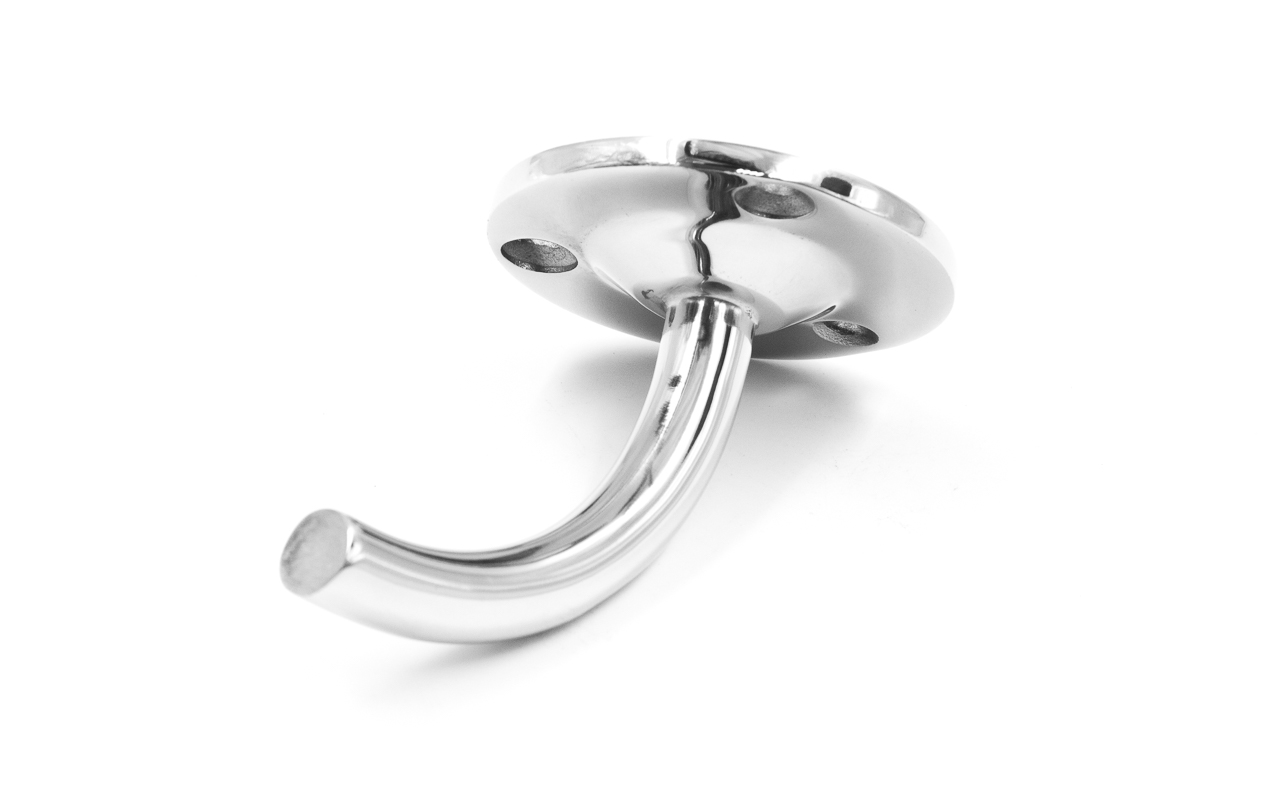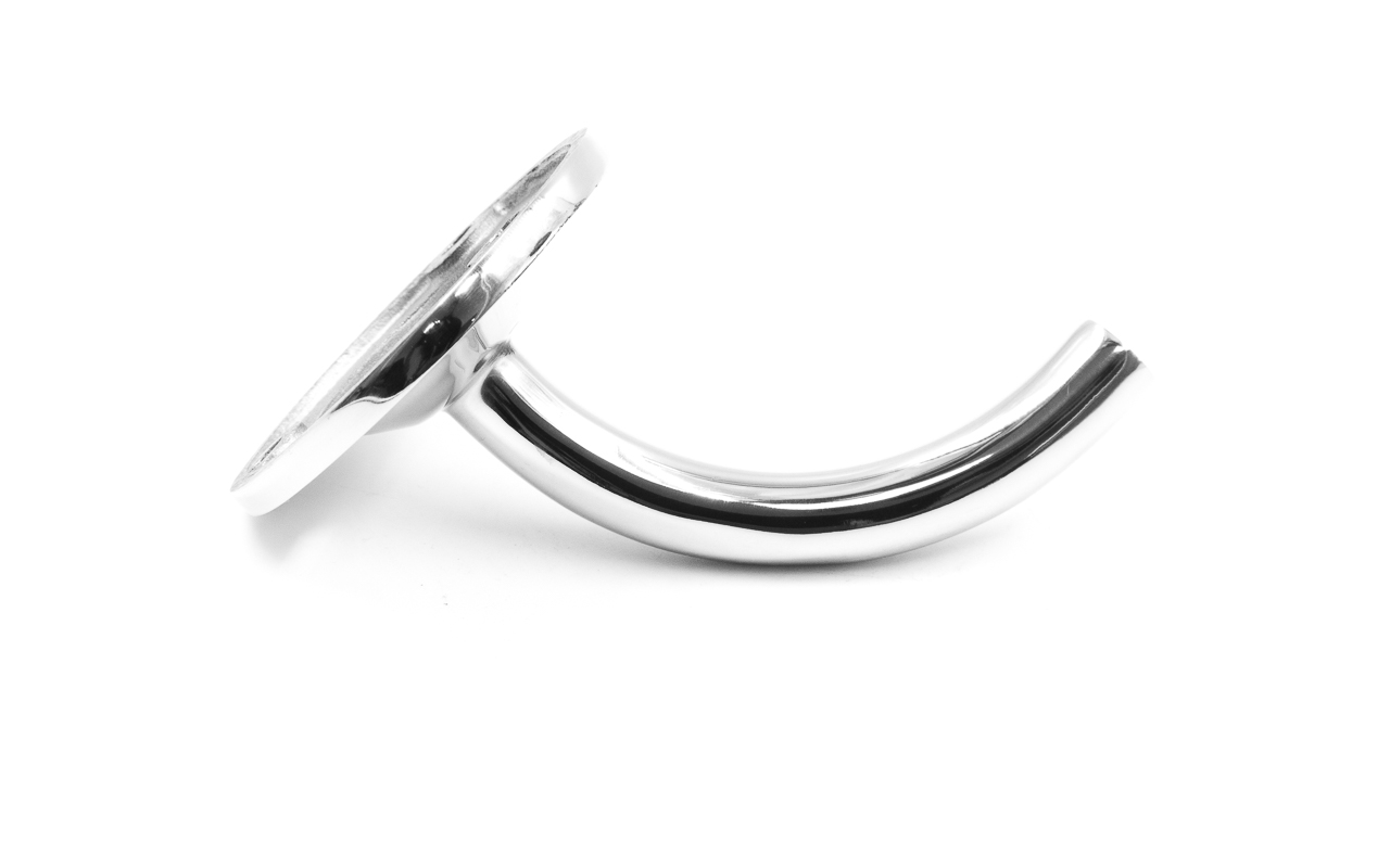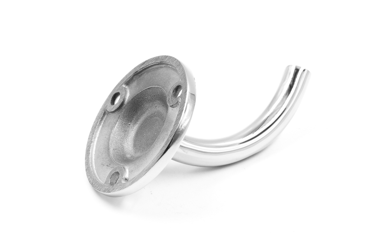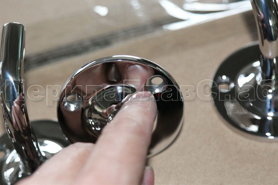 Пристенок без ложемента. Три отверстия под саморез с потайной головкой 5мм. Деталь литая, полированная. Марка стали детали - AISI 304.
