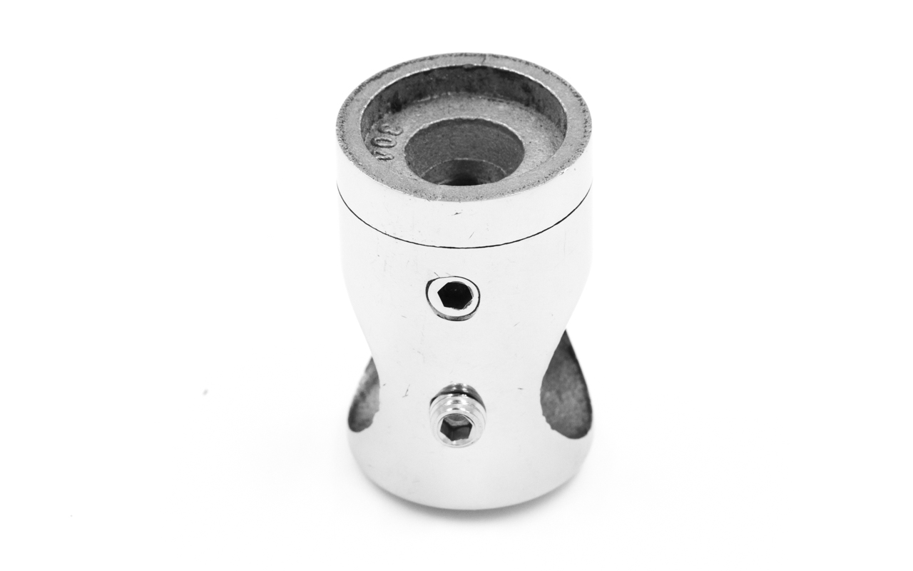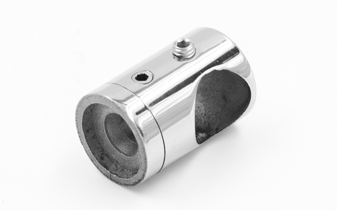 Ригеледержатель литой на стойку под плоскость, для трубы Ø16 мм. Деталь полированная, разборная, фиксация ригеля с помощью шестигранника