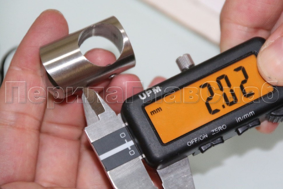 Предназначен для крепления нержавеющего ригеля (тетивы, струны) диаметром 16 мм к стойке ограждения Ø38.1 мм.