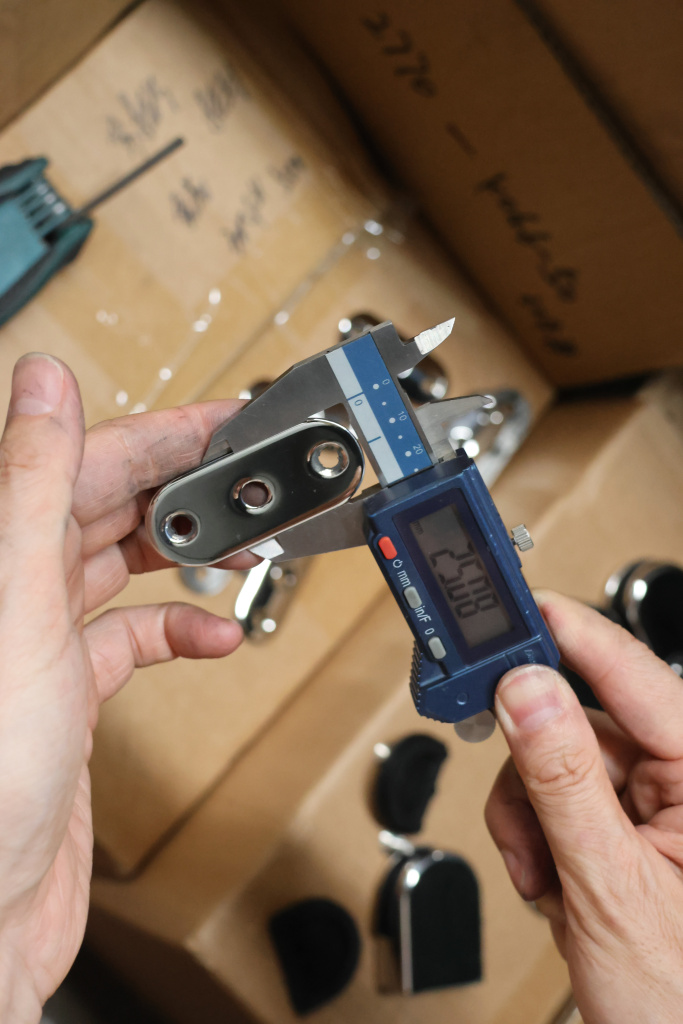 Наконечник на стойку из профильной трубы 40х40 мм, с регулируемым ложементом под плоскость, литой, полированный, нержавеющий AISI 304 k222-3 купить в Уфе
