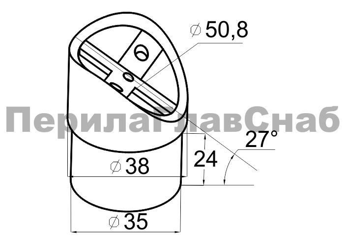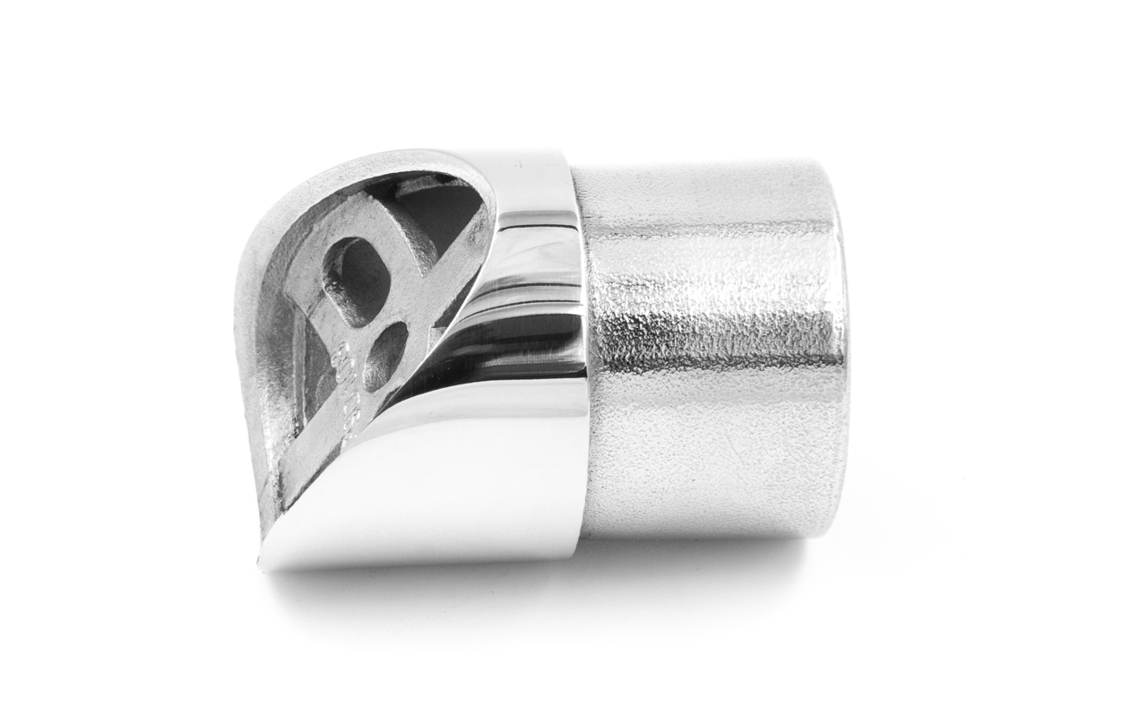 Наконечник седловина косая 30° на стойку Ø38.1 мм, под поручень Ø50.8 мм, литая, полированная, AISI 304, k045-1