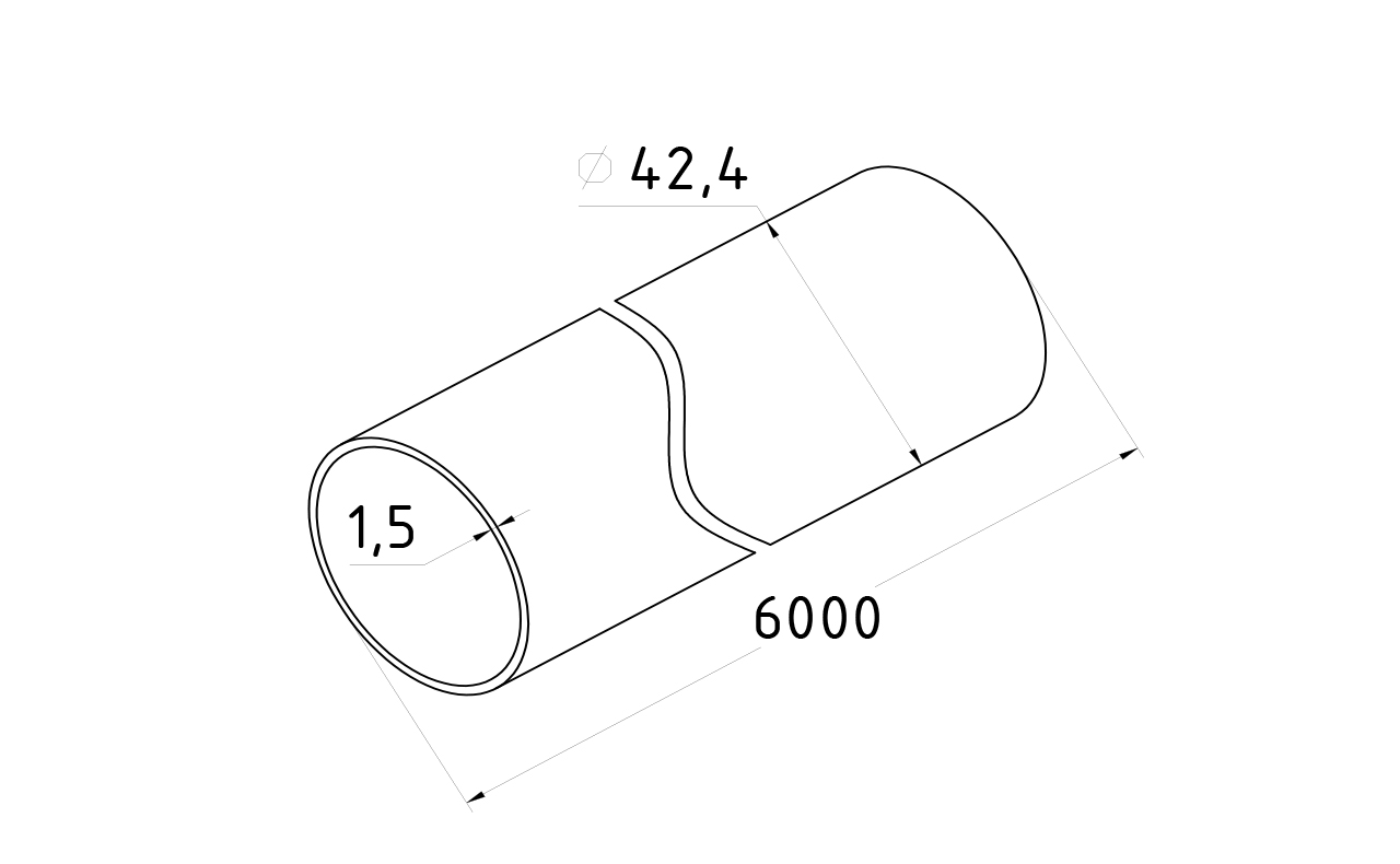 Труба Ø42.4х1.5x6000 мм, полировка 600GRIT, (AISI 201)