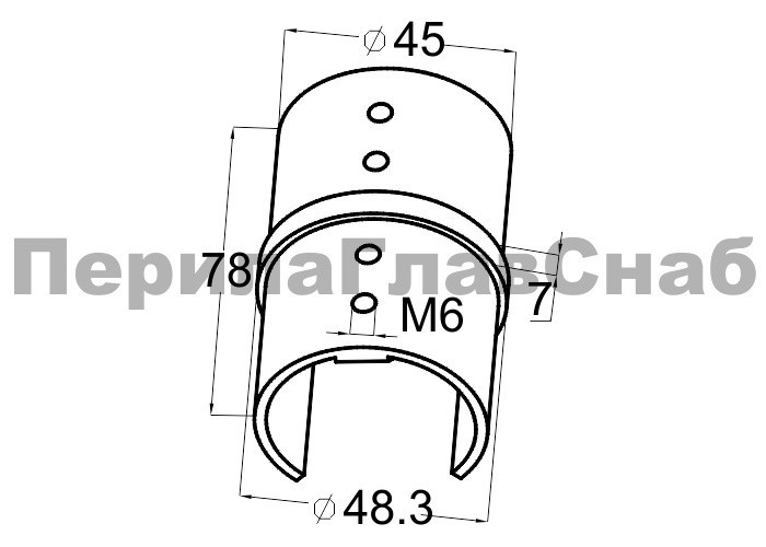 Соединитель для поручня с пазом, литой, полированный, Ø48.3. Марка стали - AISI 304