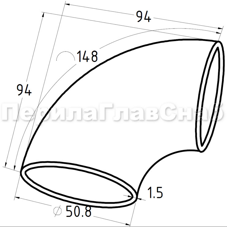Отвод поручня под сварку для Ø50.8х145х1.5 мм, полированный 400 Grit, (AISI 304) k021-14
