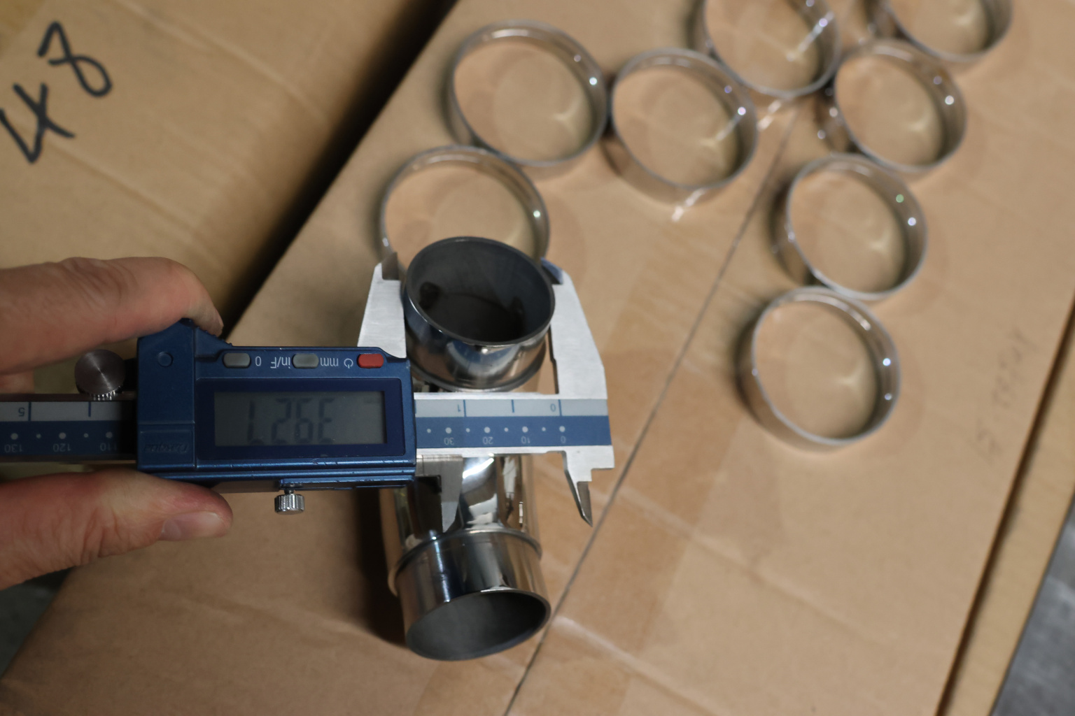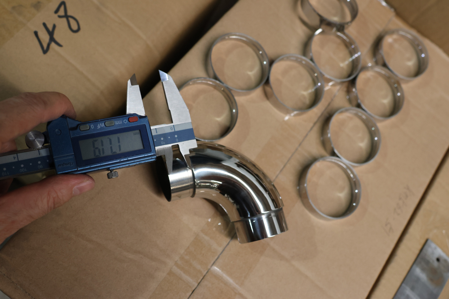 Отвод поручня под Ø42.4х1.5 мм, 90°, литой, полированный 600 Grit, с двумя установочными кольцами (aisi 316) k383-5