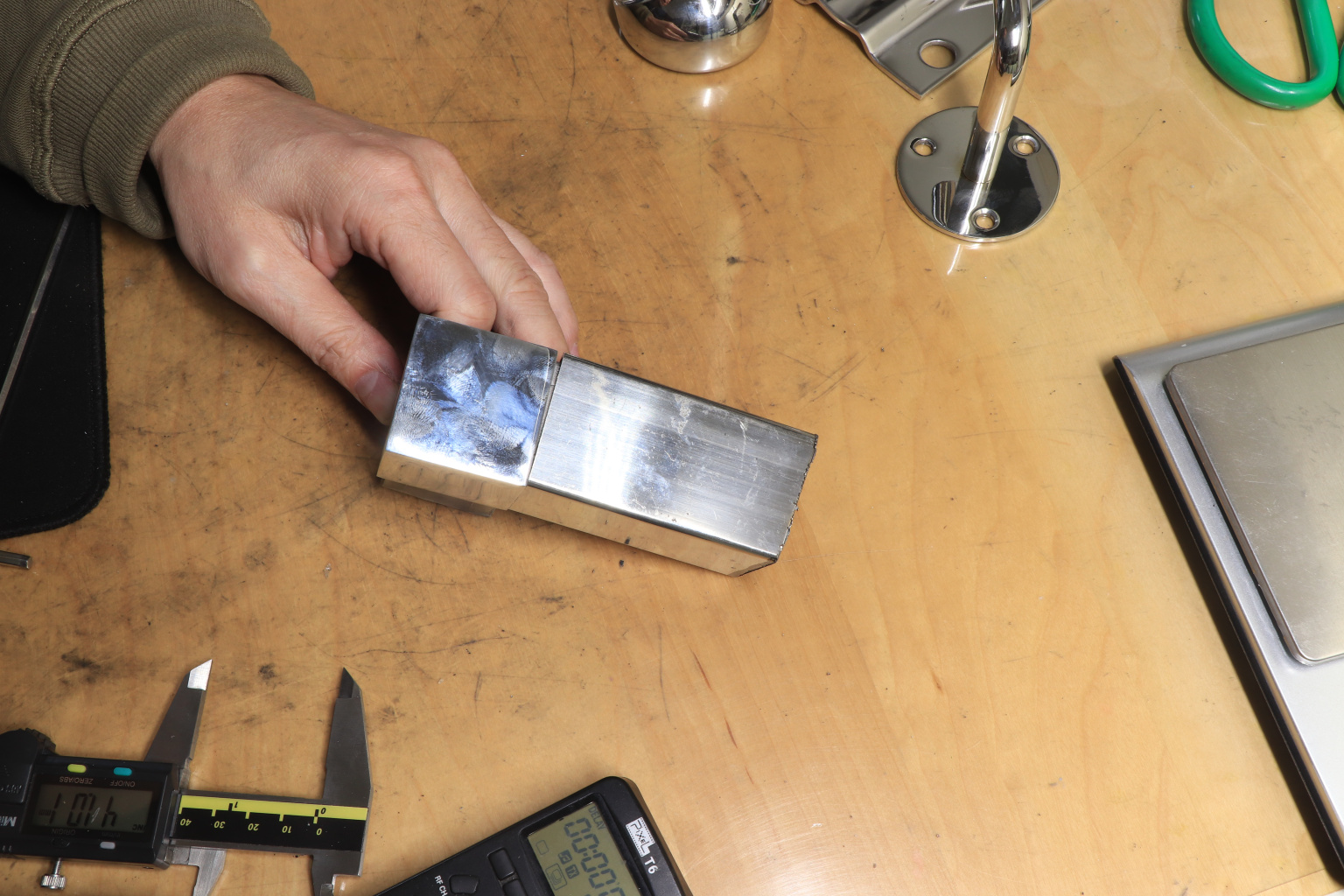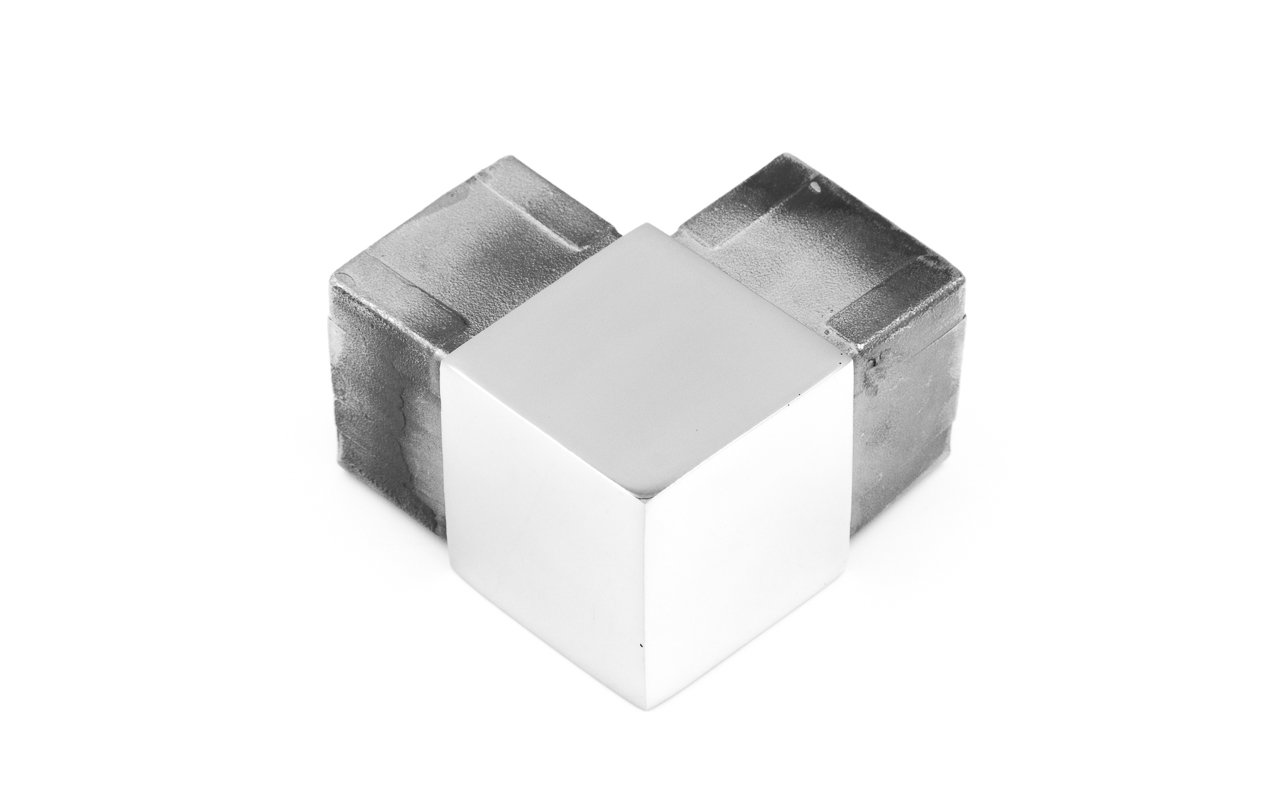 Отвод для поручня с пазом 40х40 мм. Деталь полированный, марка стали - AISI 304.