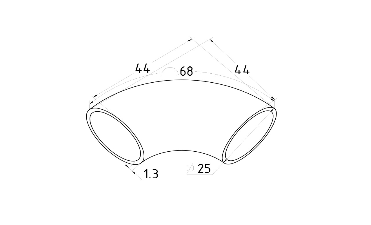 Предназначен для поворота нержавеющего поручня Ø25.4 мм и толщиной стенки 1.45 мм ограждений любого типа.