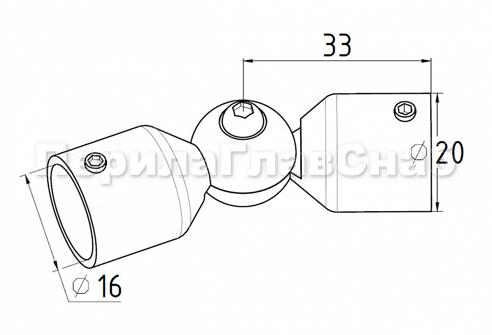 Поворот ригеля Ø16 мм, регулируемый, шаровый, внешний AISI 304 #600 k254