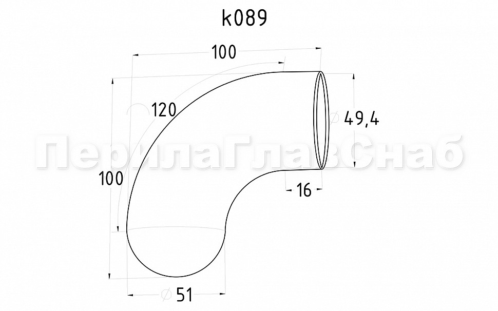 Предназначен для красивого завершения деревянного или пластикового поручня Ø49 мм. В корпусе отвода сделано специальные отверстия под саморез для фиксации отвода на торце перил.