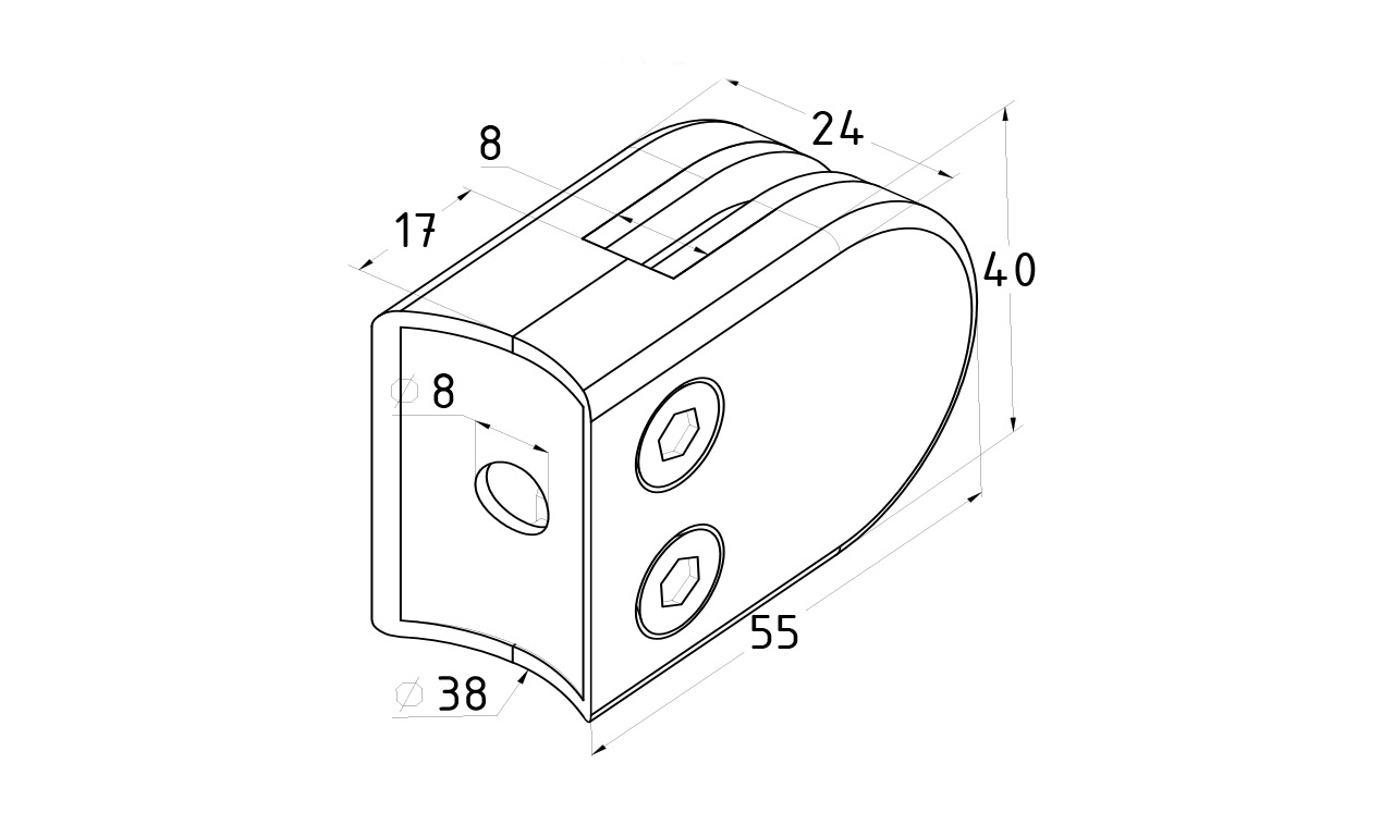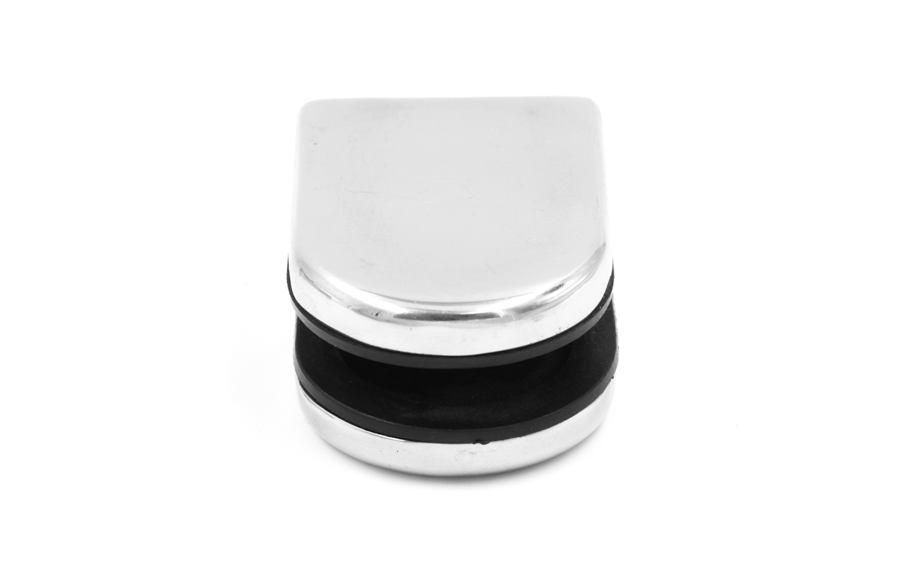 Стеклодержатель штампованный под стекло 8 мм (4+4 мм), под стойку Ø38.1 мм 40х24х54, шлифованный (AISI 304) Фk038-2